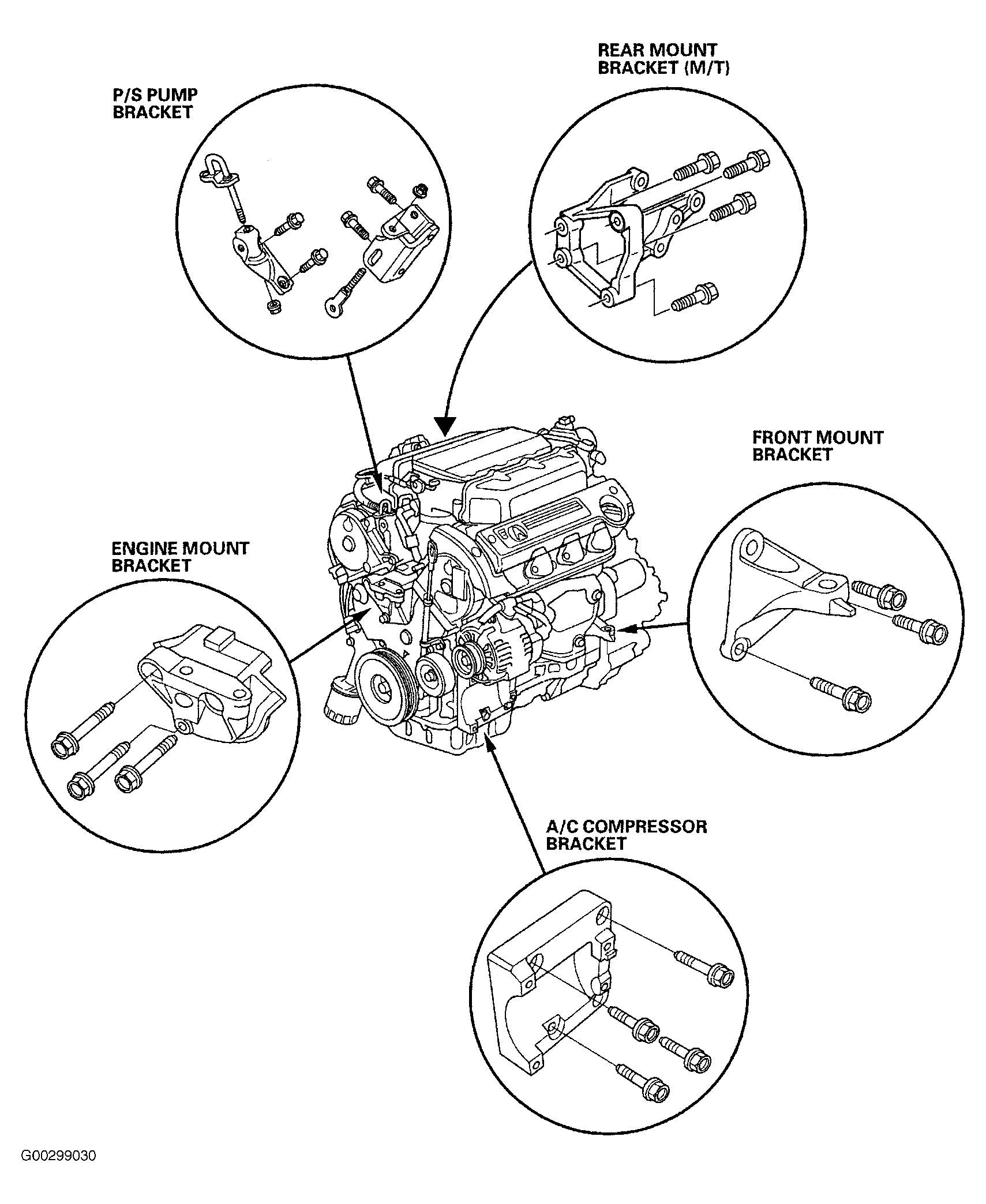 - Install engine brackets. Tighten bolts and nuts to specification. See Fig 1 and TORQUE SPECIFICATIONS .