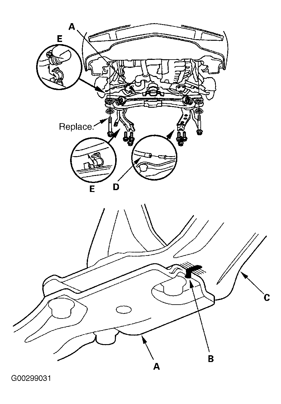 - Install the lock bolt (B) with a new lock washer (C), then bend the lock tab of the lock washer (A/T).