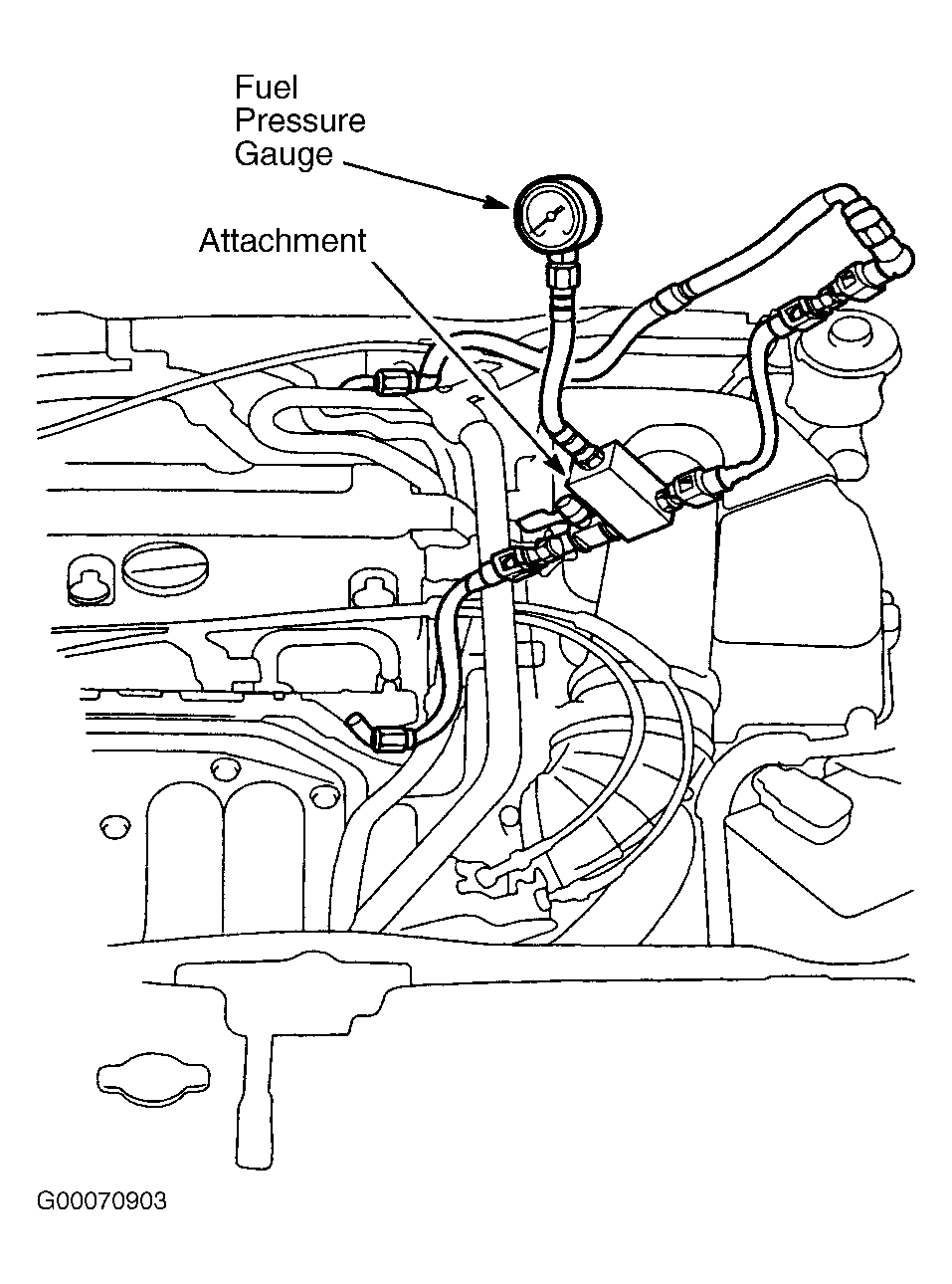 Fig 1: Identifying Fuel Pressure Gauge Attachment (RSX)