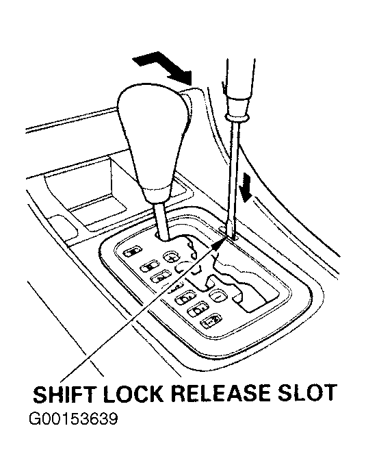 - Shift the gearshift lever out of the "P" position to check that the shift lock solenoid operates. Does the gearshift lever shift out of the "P" position? If yes, go to next step. If no, see SHIFT INTERLOCK SYSTEM .