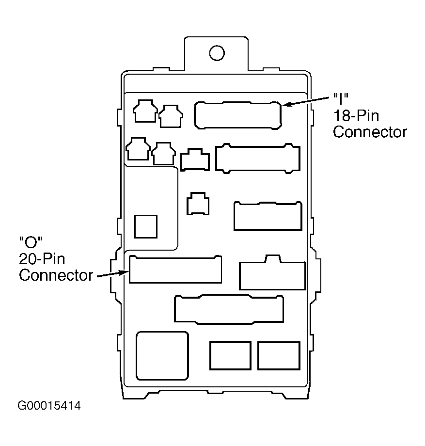 - Remove driver's underdash fuse/relay box. See DRIVER'S UNDERDASH FUSE/RELAY BOX under REMOVAL & INSTALLATION. Remove driver's multiplex control unit from driver's underdash fuse/relay box. Disconnect driver's multiplex control unit connector. Also disconnect driver's underdash fuse/relay box 18-pin connector "I" and 20-pin connector "O". See Fig 1. Inspect connectors and terminals. Check for bent, loose or corroded terminals. Perform driver's multiplex control unit input test "A". See Fig 2. Repair as necessary and recheck system operation. If driver's multiplex control unit inputs are okay, go to next step.