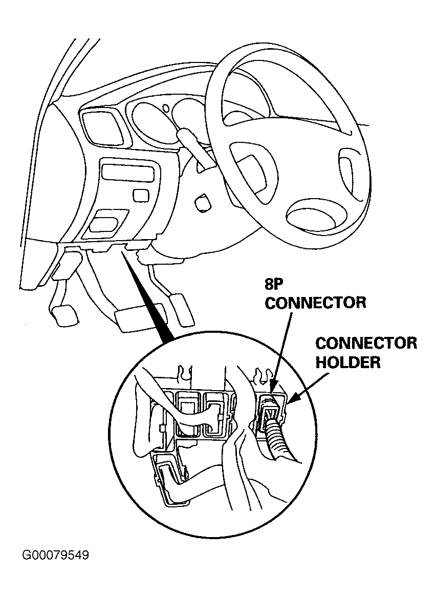 - Disconnect ignition switch 8-pin connector from main wire harness. See Fig 1.