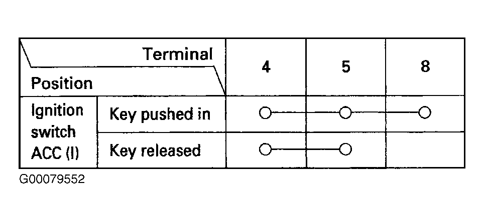 - Check that the key cannot be removed with power and ground connector to the No. 4 and 8 terminals.