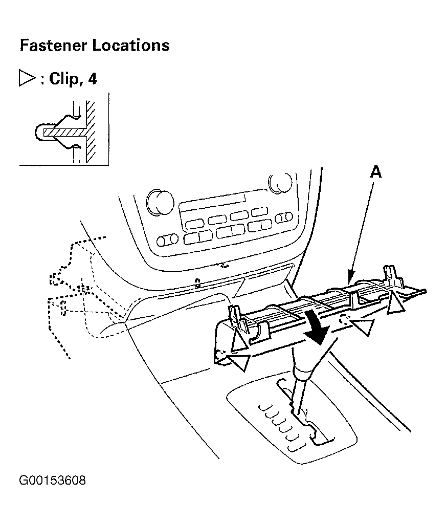 When prying with a flat-tip screwdriver, wrap it with protective tape, and apply protective tape around the related parts, to prevent damage. Take care not to scratch the front seat, dashboard, and related parts.