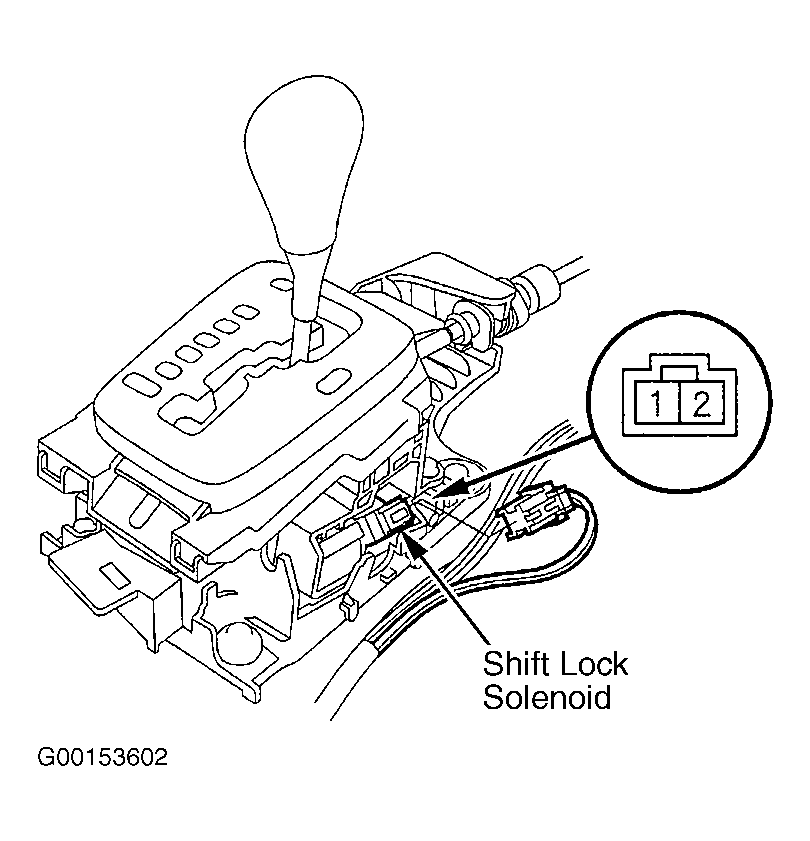 - Check that the shift lock solenoid operates. Does the shift lock solenoid operate properly? If yes, check for open in the wire between PCM connector terminal A28 and the shift lock solenoid. If no, replace the shift lock solenoid. See SHIFT LOCK SOLENOID under REMOVAL & INSTALLATION.