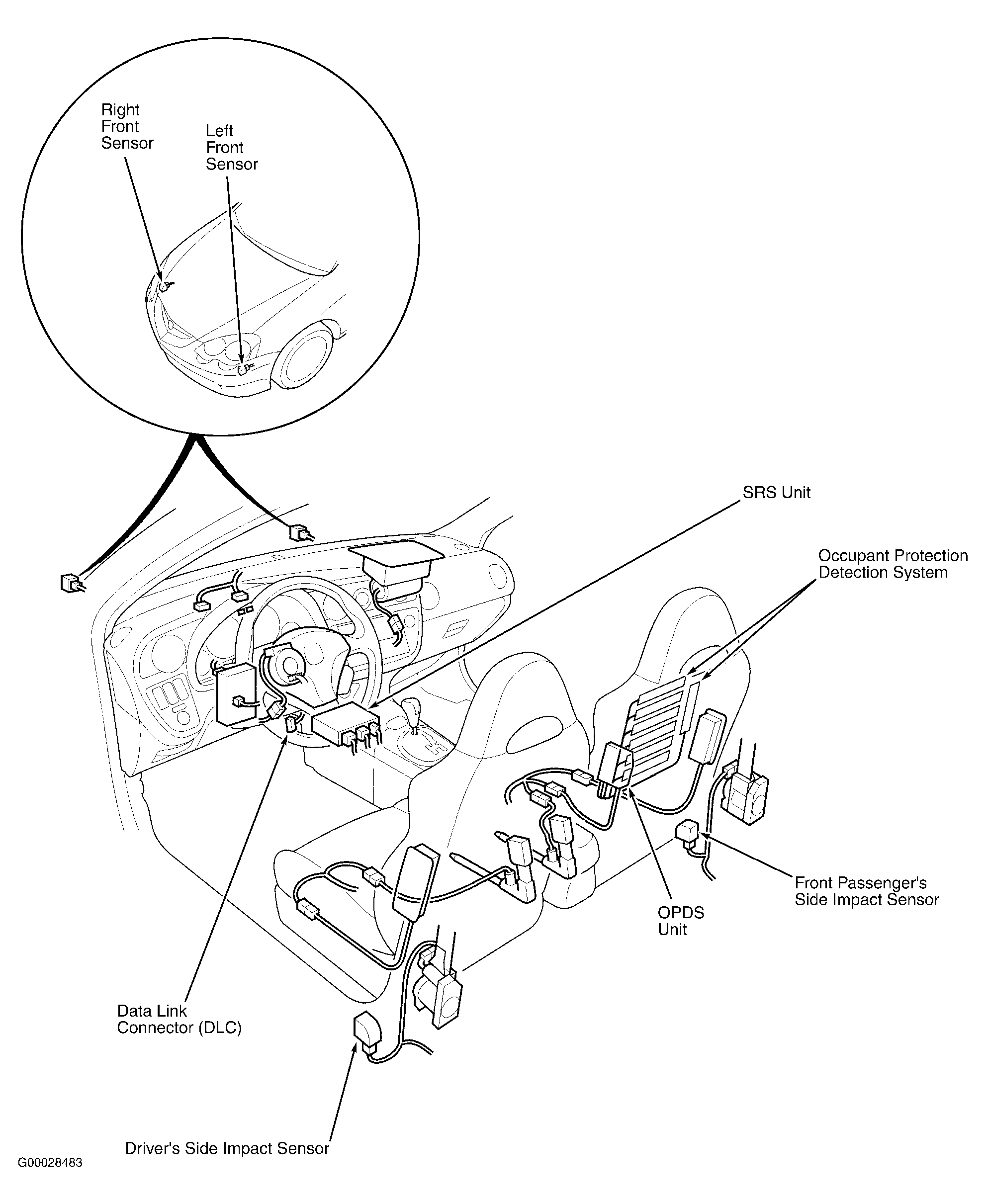 | SRS Unit | Below center of dash, left of heater unit. See Figure . |