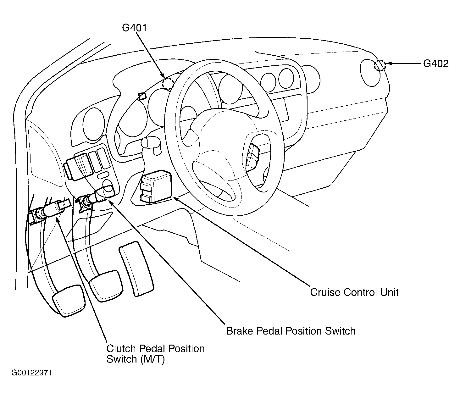 | Cruise Control Unit | Under left center side of dash. See Figure . |