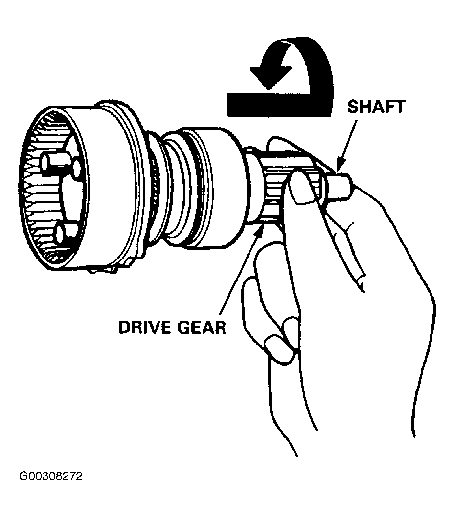 1. Slide overrunning clutch along shaft. If overrunning clutch does not slide smoothly, replace overrunning clutch assembly. Rotate overrunning clutch on shaft. See Fig 1 . If clutch does not lock when rotated in one direction and rotates smoothly in other direction, replace overrunning clutch assembly.