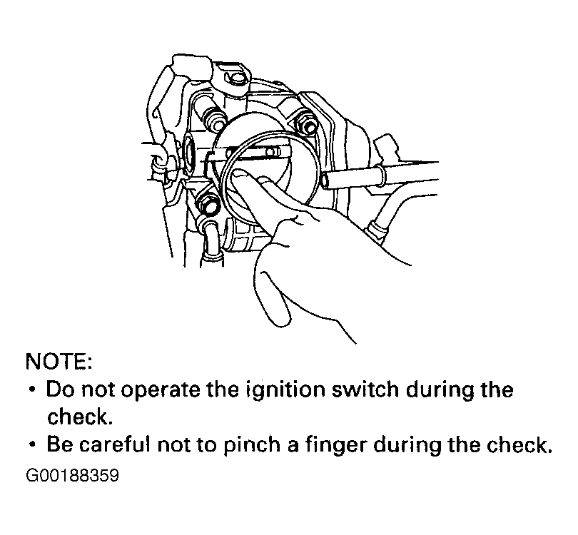 DO NOT insert your fingers into installed throttle body when you turn ignition on or when ignition is on. Serious injury to your fingers will result if throttle valve is activated.
