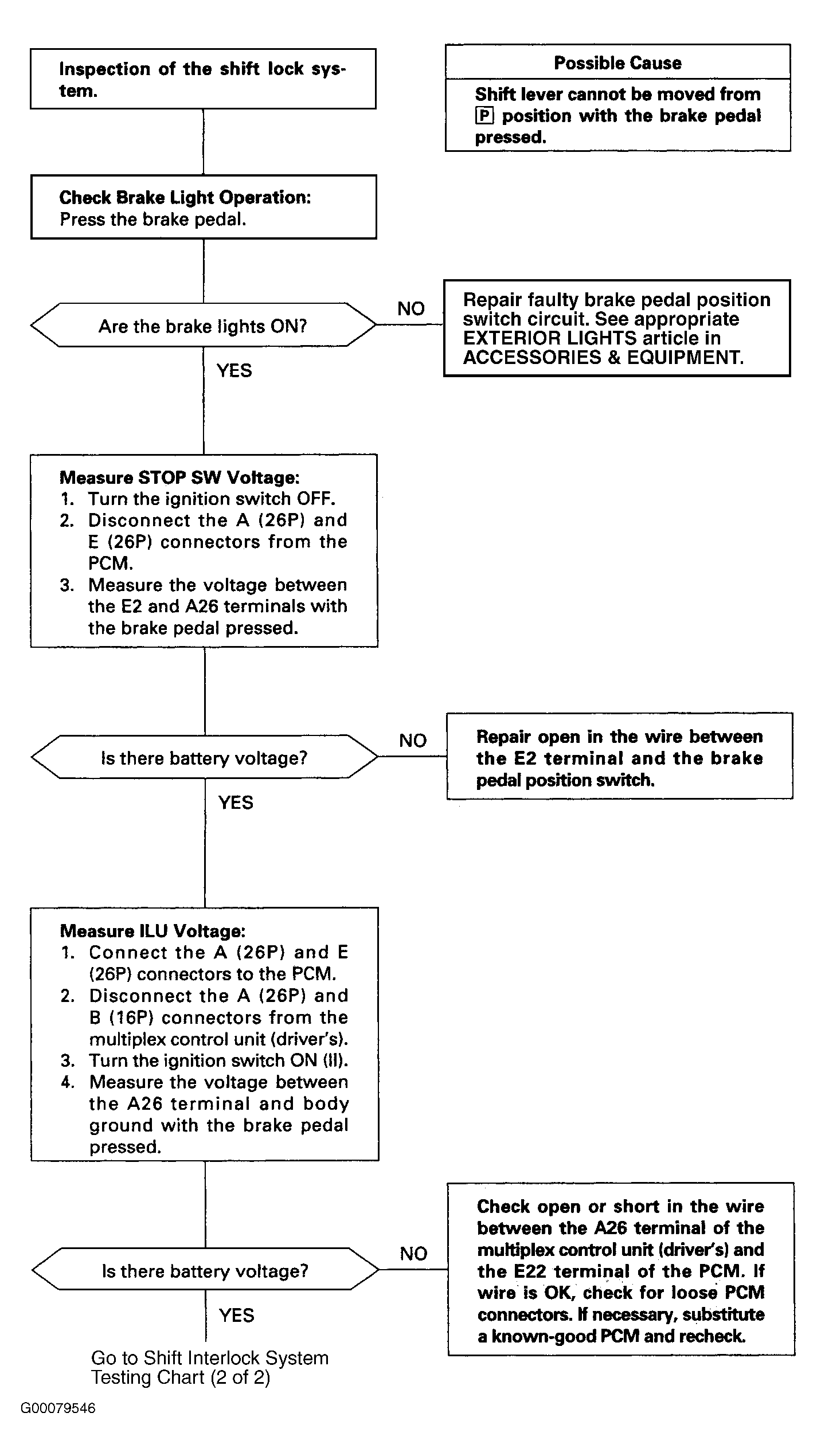 For shift interlock system circuit wire color and terminal identification, see WIRING DIAGRAMS .