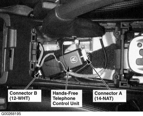 | Hands-Free Telephone Control Unit (Acura Accessory) | Under center console. See Figure . |