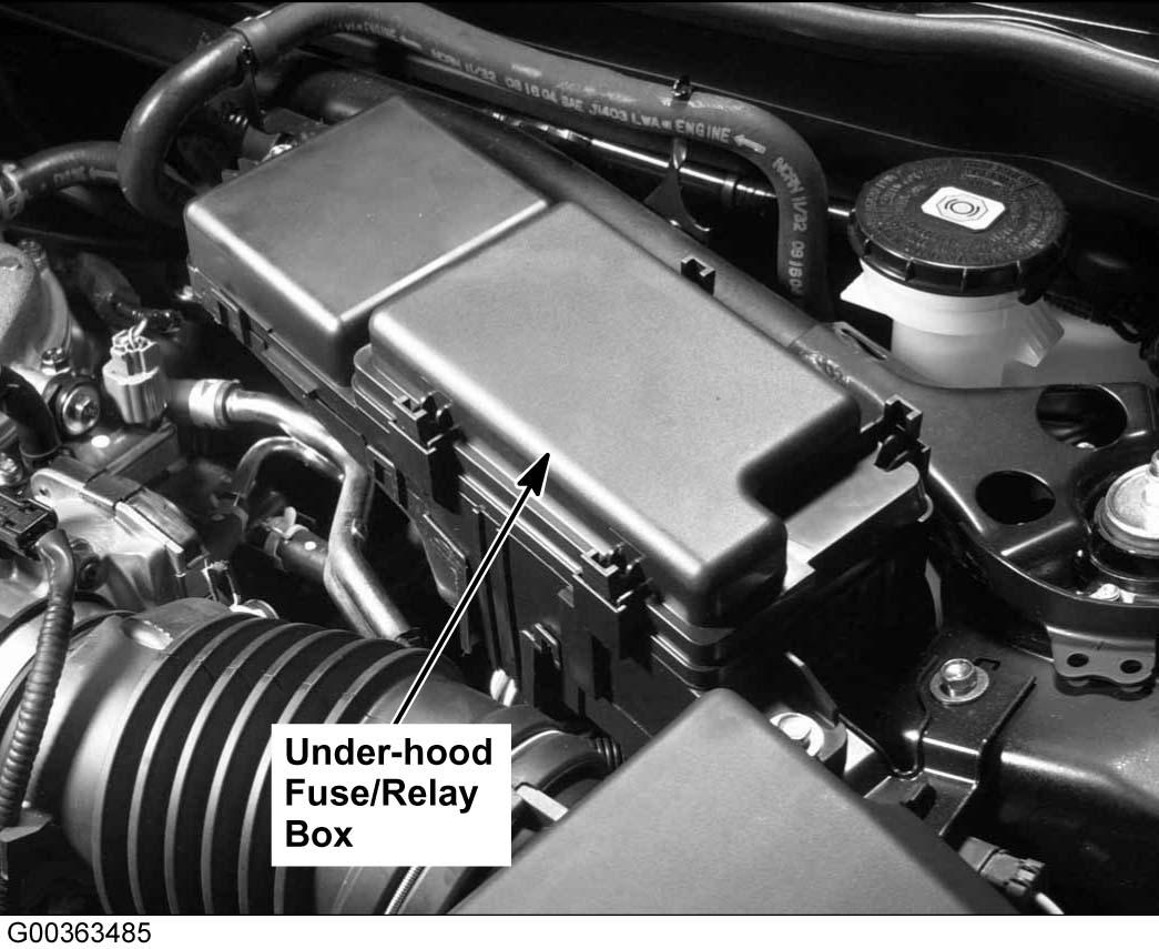 | Under-Hood Fuse/Relay Box | Left rear of engine compartment. See Figure. |
