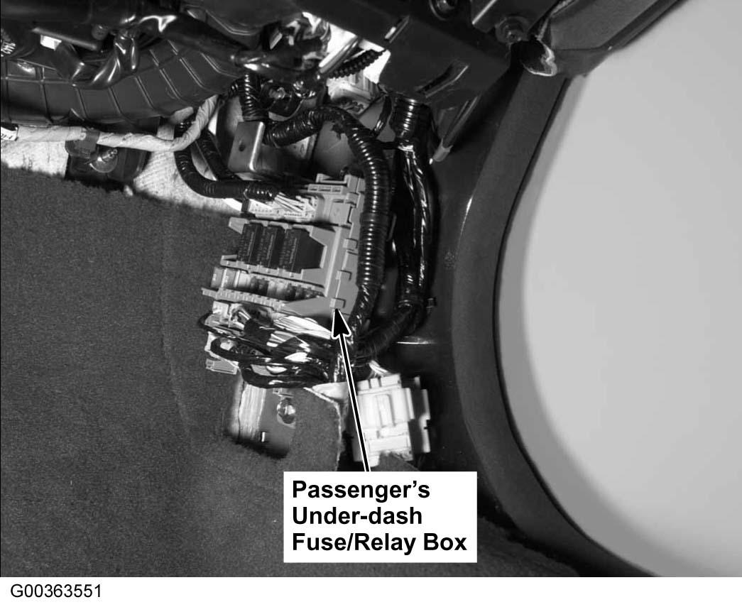 | Passenger's Under-Dash Fuse/Relay Box | Behind right kick panel. See Figure. |
