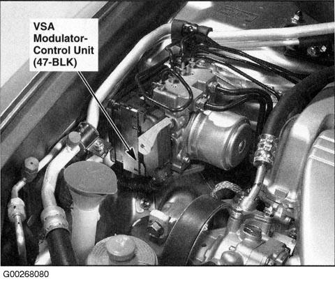 | VSA Modulator-Control Unit | At right side of engine compartment. See Figure. |