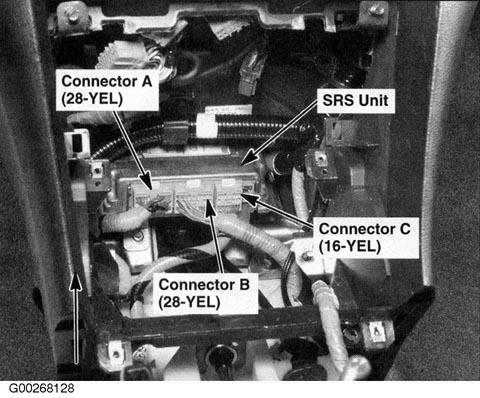 | SRS Unit | Behind middle of dash. See Figure. |