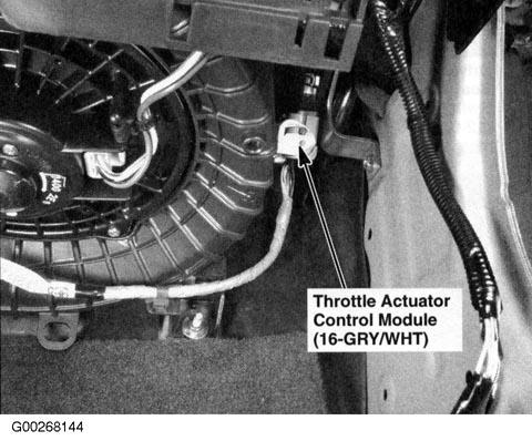 | Throttle Actuator Control Module | Under right side of dash. See Figure. |