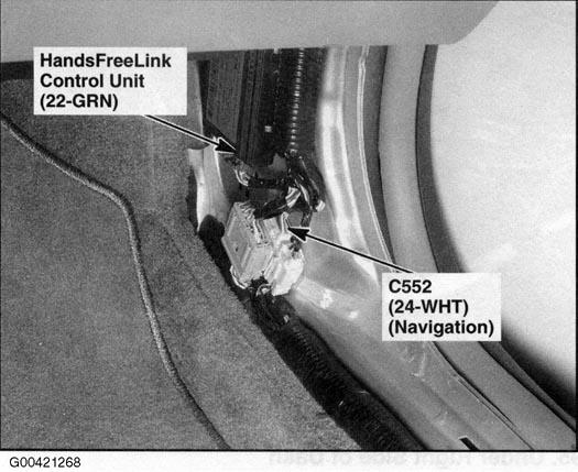 | HandsFreeLink Control Unit | Behind right kick panel. See Figure. |