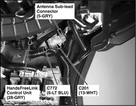 | HandsFreeLink Control Unit | Behind right kick panel. See Figure. |
