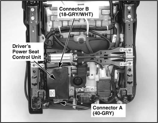 | Driver's Power Seat Control Unit | Under driver's seat. See Figure. |