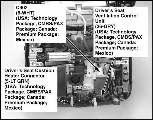 | Driver's Seat Ventilation Control Unit | Under driver's seat. See Figure. |
