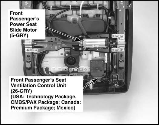 | Front Passenger's Seat Ventilation Control Unit | Under front passenger's seat. See Figure. |