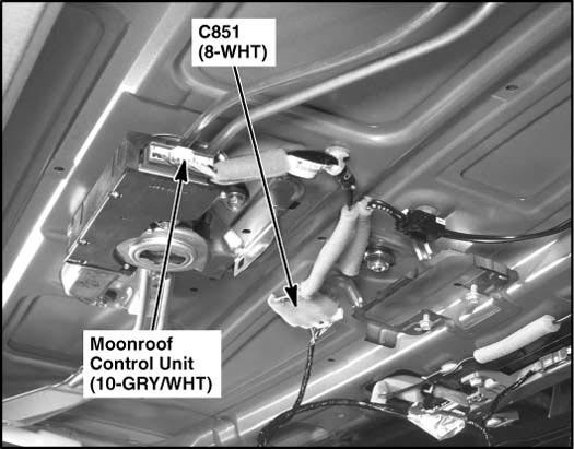 | Moonroof Control Unit | Rear of roof. See Figure. |