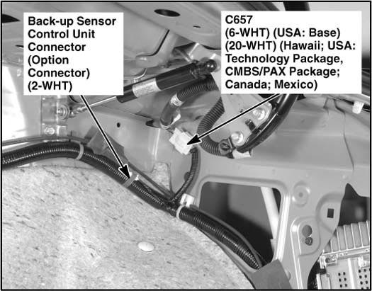 | Back-Up Sensor Control Unit Connector | Right side of trunk. See Figure. |