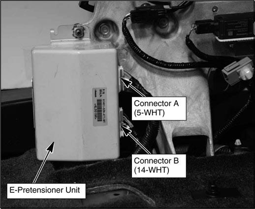 | E-Pretensioner Unit | Under center console. See Figure. |