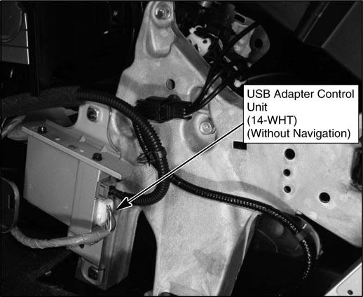 | USB Adapter Control Unit | Under center console. See Figure. |