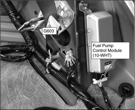 | Fuel Pump Control Module | Left "C" pillar. See Figure. |