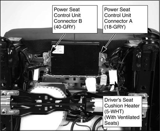 | Power Seat Control Unit | Under driver's seat. See Figure. |