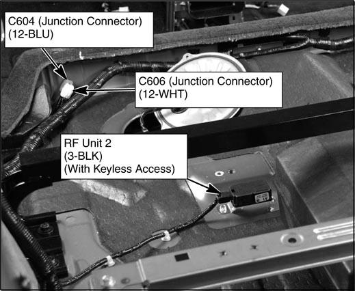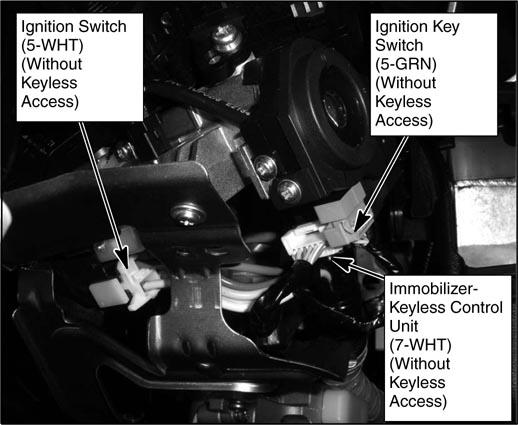 | Immobilizer-Keyless Control Unit | In steering column. See Figure. |