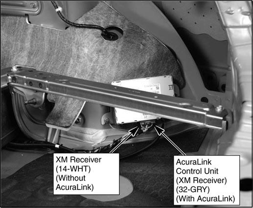 | AcuraLink Control Unit (XM Receiver) | Right side of cargo area. See Figure. |