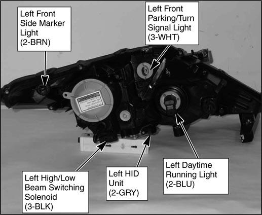 | HID Unit (Left) | Behind left headlight. See Figure. |