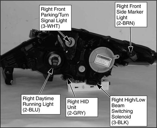 | HID Unit (Right) | Behind right headlight. See Figure. |