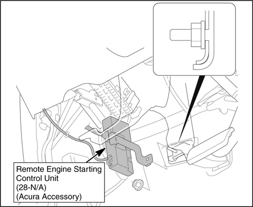 | Remote Engine Starting Control Unit | Under left side of dash. See Figure. |