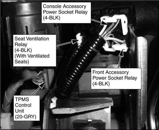 | TPMS Control Unit | Under left side of dash. See Figure. |