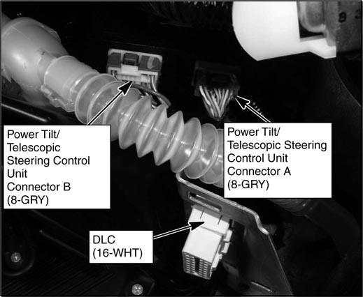 | Power Tilt/Telescopic Steering Control Unit | Under left side of dash. See Figure. |