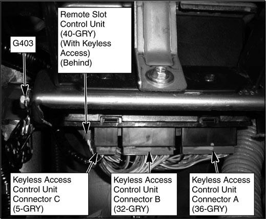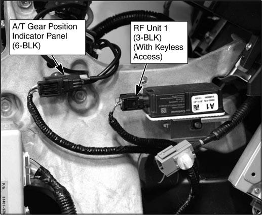 | Keyless Access Control Unit | Middle of dash. See Figure. |