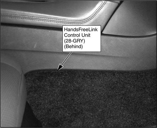 | HandsFreeLink Control Unit | Under center console. See Figure. |
