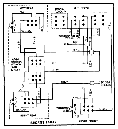 - Connect a jumper wire between Red wire and Yellow or Violet wire at switch connector. Connect a second jumper between Black wire and Orange or Dark Green wire. Motor should move window either up or down.