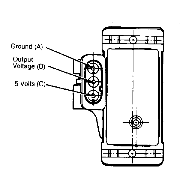 - Check for MAP sensor supply voltage of 4.5-5.5 volts at sensor connector, pin C, with ignition on. Similar voltage should be present at pin 2 of ECU connector J2. Repair or replace wiring harness if required. Test for sensor ground between pin 13 of ECU connector J2 and pin A of sensor connector.