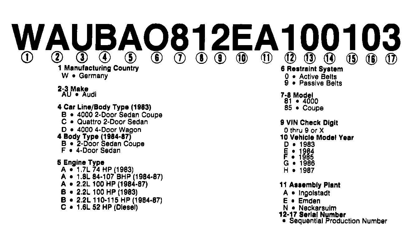 Home >> Audi >> 1983 >> 4000 Base >> Repair and Diagnosis >> Engine Performance >> Application >> Engine/VIN Id >> Model Identification >> Notes