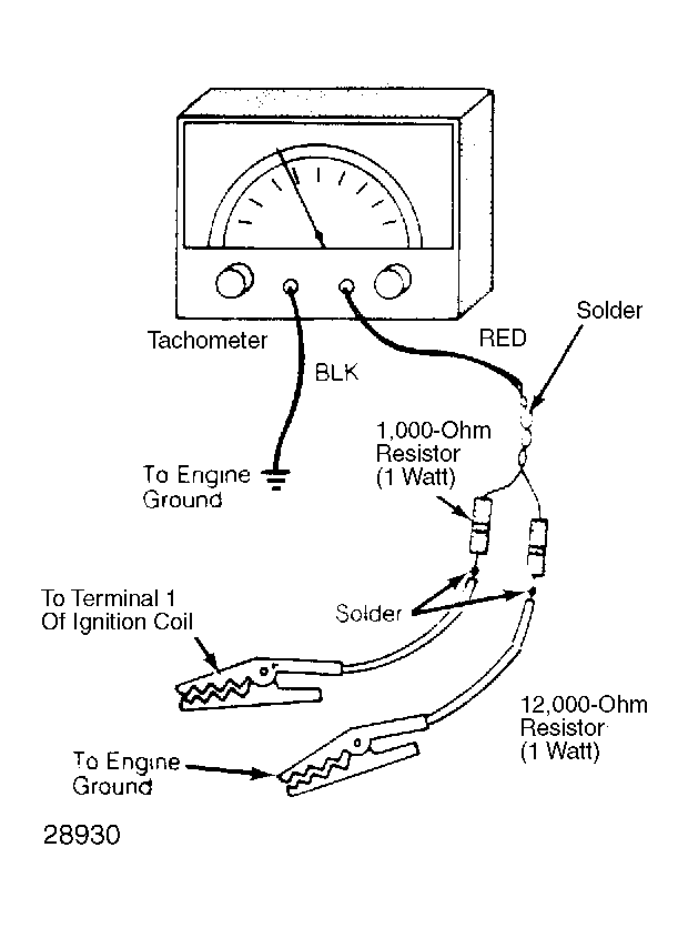 2. Adapter is formed from 2 wires soldered together at one end. One wire (leading to coil terminal 1) must be equipped with a 1000-ohm, 1-watt resistor.