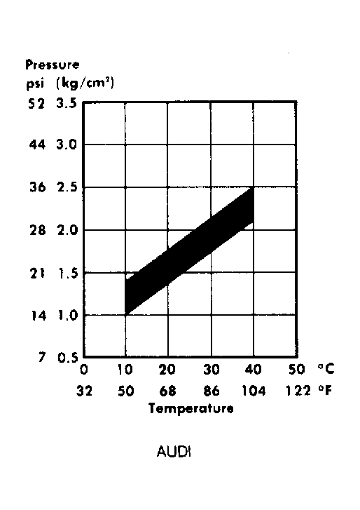 2. Check pressure quickly. Reading should fall in shaded area of graph. Be sure to check air temperature and read correct area of graph. See Fig 1 .