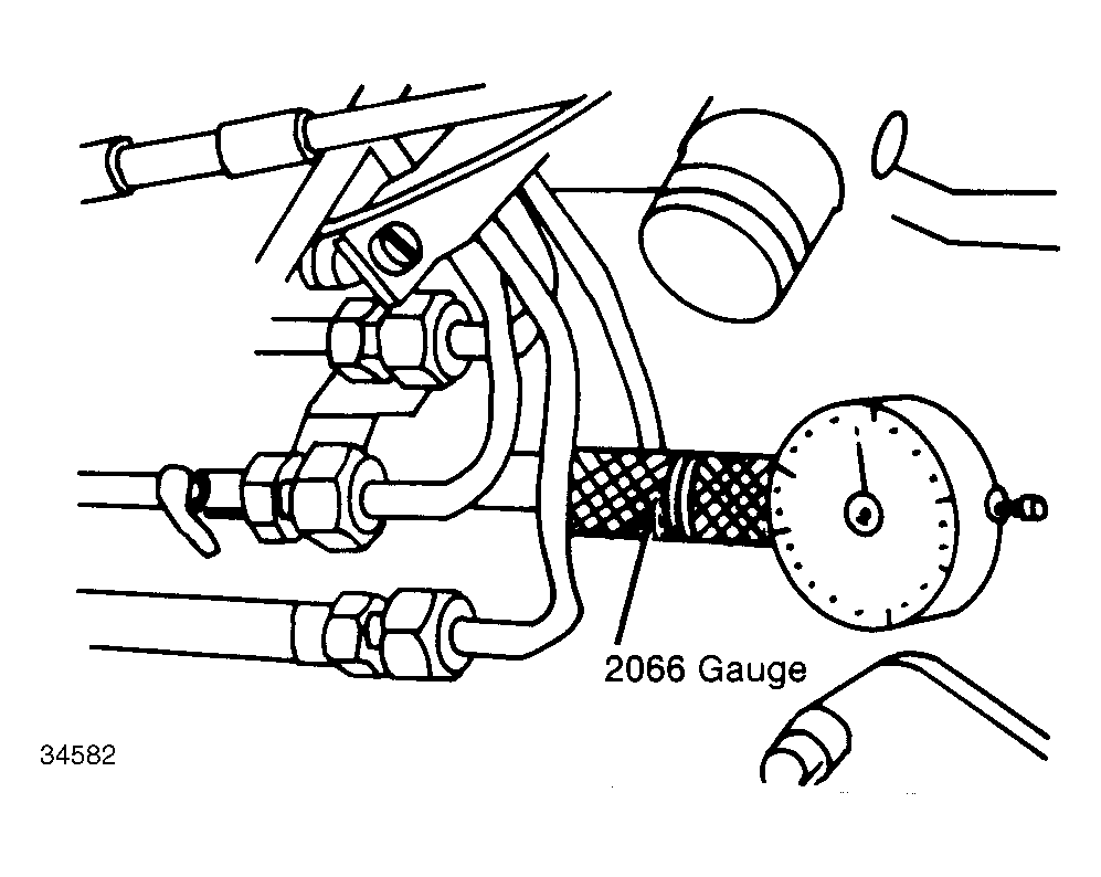 3. Preload dial indicator (2066) to .097" (2.5 mm). See Fig 2 . Slowly turn engine counterclockwise until dial indicator needle stops moving. Zero indicator.