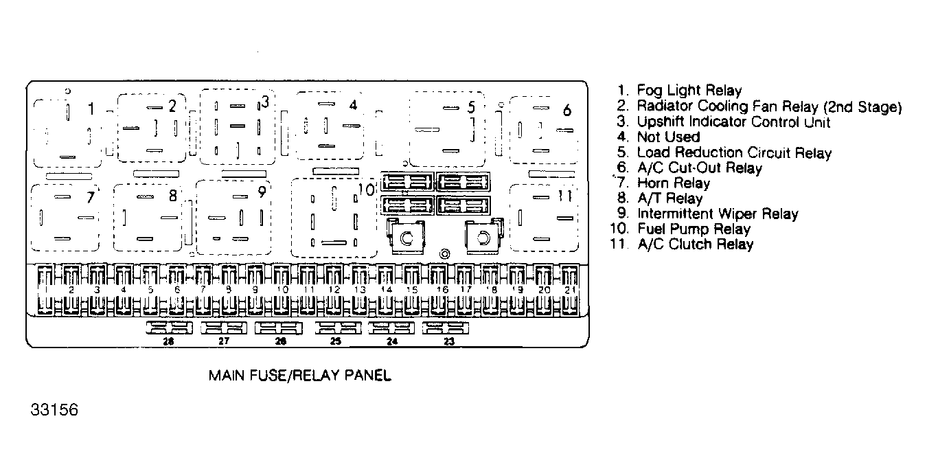 | Upshift Indicator Control Unit | Position 3 on main fuse/relay panel. See Figure. |