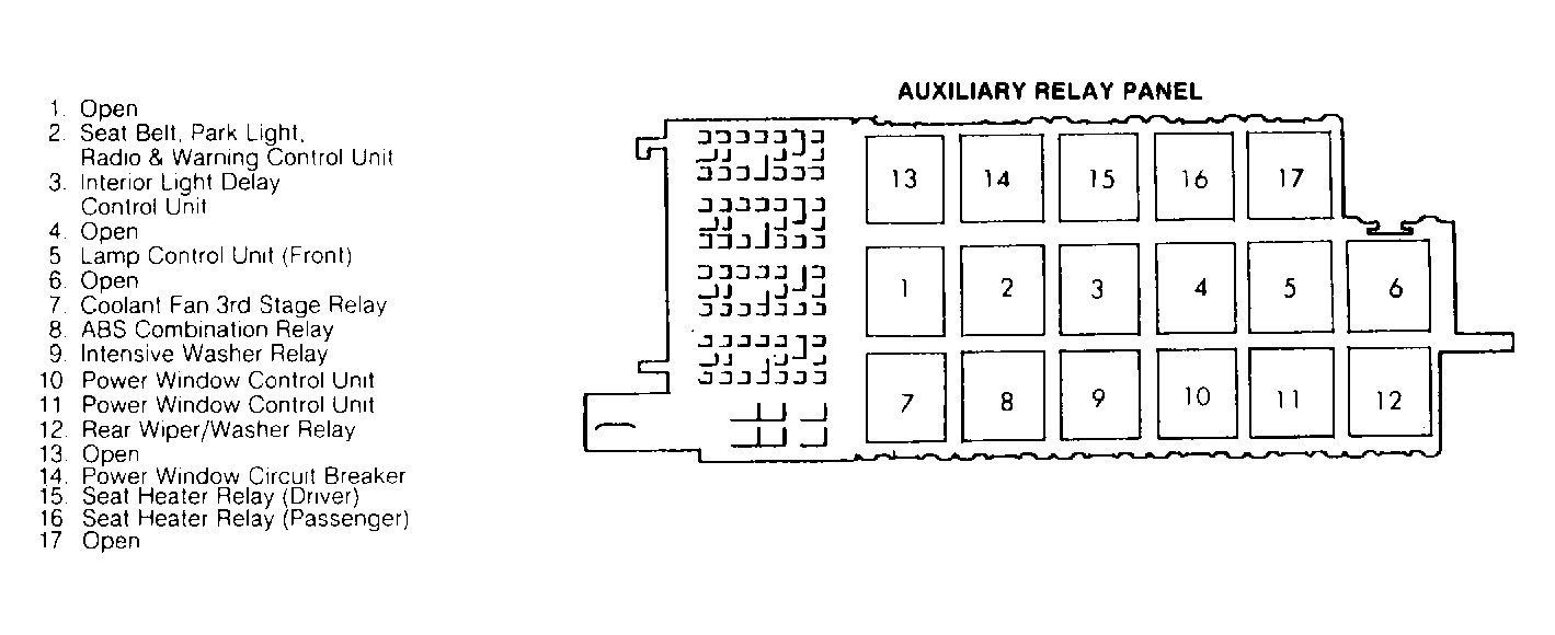 | Power Window Control Units (2) | On auxiliary relay panel. See Figure . |