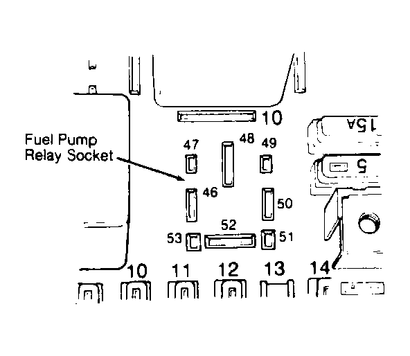 - Remove fuel pump relay from relay board. Turn ignition on. Test light should light when connected between socket for relay terminal No. 46 and ground. See Fig 1