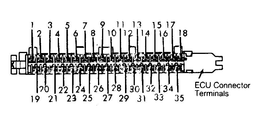 - Unplug connector from ECU. Check wiring between harness side of each sensor connector and ECU. SeeFig 1